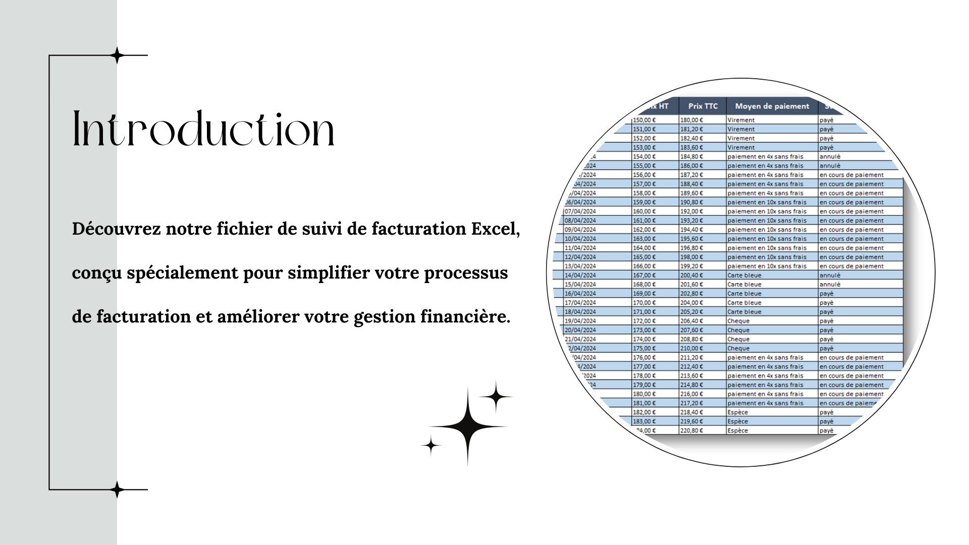 Vous cherchez un moyen simple et efficace de suivre vos paiements clients? Notre fichier Excel pour la gestion de facturation est la solution idéale pour votre entreprise !