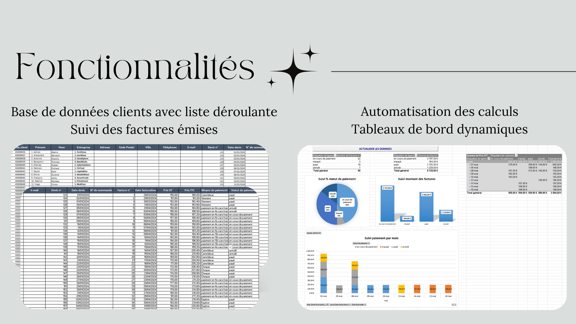 Facturation, Suivi des facturations, facture client, gestion facturation client, feuille de calcul EXCEL suivi de facturation